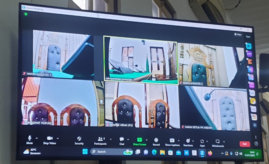 Infokasus24(Medan) Pengadilan Negeri Medan menggelar sidang via vidcon sidang lanjutan Tindak Pidana Korupsi Secara Bersama – Sama dengan agenda Pembacaan Tuntutan oleh Jaksa Penuntut Umum Kejaksaan Tinggi Sumatera Utara dengan Nomor Perkara : 25/Pid.Sus-TPk/2023/PN MDN. Senin(17/7) sekira pukul 17.00 Wib. di ruang Cakra IX.