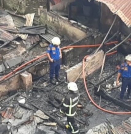 Enam pintu rumah semi permanen milik Manab Nasution (40) di Jalan Panglima Denai Lingkungan III Kelurahan Amplas Kecamatan Medan Amplas ludes dilalap sijago merah, Selasa (1/8/2023).