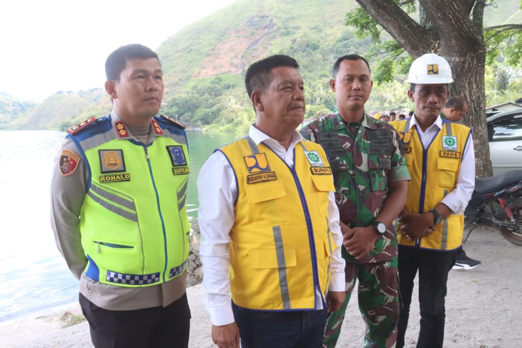 Kapolres Simalungun AKBP Ronald Fredy C Sipayung, bersama Unsur Forum Komunikasi Pimpinan Daerah (Forkopimda) melakukan pengawasan dan monitoring dalam pelaksanaan pengerjaan Proyek Prioritas dan anggaran penanganan jalan daerah di Jalur Lingkar Pesisir Danau Toba.
