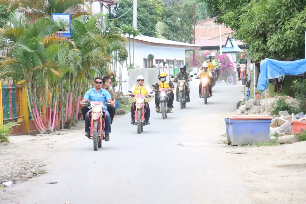 Dengan mengendarai Sepeda Motor Kapolres Simalungun AKBP Ronald F.C Sipayung, S.H,SIK,MH, bersama Bupati Simalungun Radiapoh Hasiholan Sinaga, SH.MH, Dandim 0207/Sml Letkol Inf Hadrianus Yossy, S.B, S.I.Pem.,M.Han, Kadis PUTR Simalungun Hotbinson Damanik, Kadis Pariwisata dan Kebudayaan Kab.Simalungun Mhd. Fikri Damanik,SIP, MSi, melakukan pengawasan di beberapa titik lokasi termasuk Desa Bage Dusun Dolok Maria Nagori Ujung Saribu, dan Dusun 2 Salbe Togu Domu Nauli Tiga Ras, Kabupaten Simalungun.