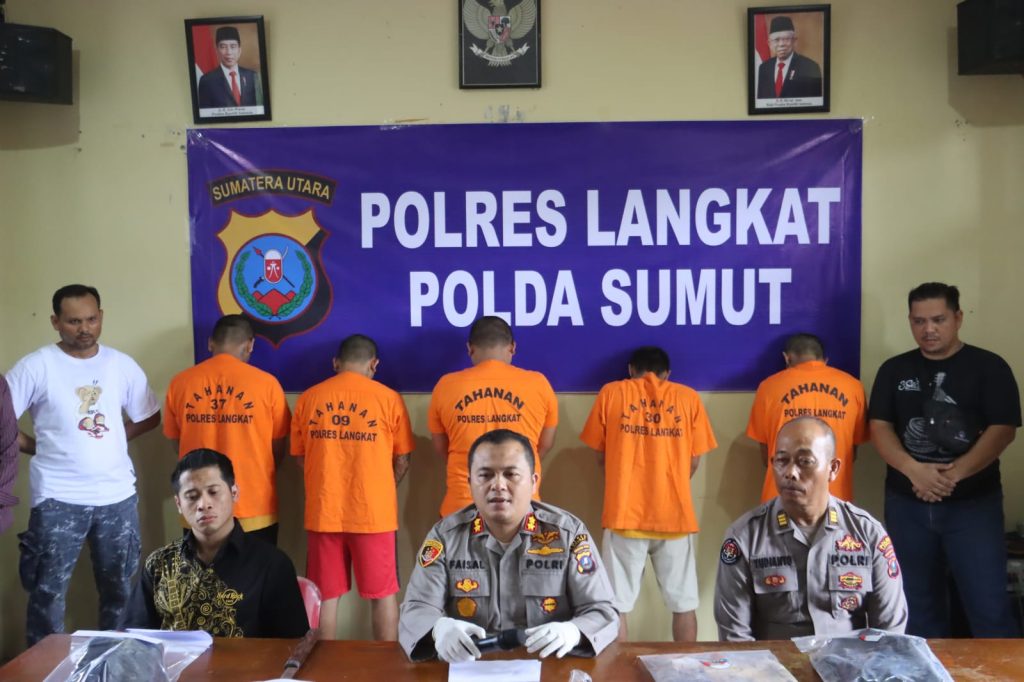 Kepolisian Resort Langkat melalui Satuan Reserse Kriminal bagian Kejahatan dan Kekerasan (Jahtanras) berhasil meringkus 5 (lima) pelaku Tindak Pidana Melakukan Kekerasan secara bersama – sama terhadap orang atau penganiayaan mengakibatkan matinya orang dan atau turut serta melakukan perbuatan yang dapat di hukum. Yakni kekerasan hingga mengakibatkan korban Simson Sembiring alias Bagong (40) tewas.