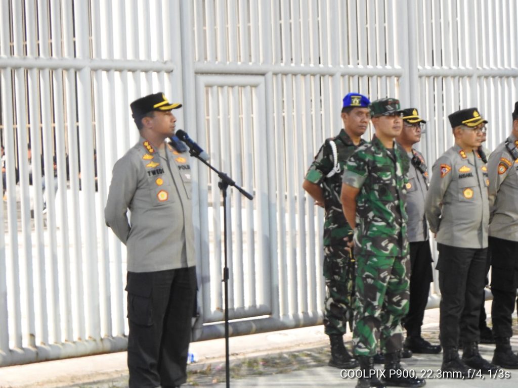 Sebagai Upaya Menciptakan rasa aman kepada suporter, Dandim 0509 Kabupaten Bekasi Letkol inf Danang Waluyo Bersama Kapolres Metro Bekasi Kombespol Twedi Aditya Bennyahdi Gelar Apel pengamanan pertandingan sepak Persikabo VS PSS Sleman, Pertandingan berlangsung di GOR Wibawa Mukti beralamat Kp. Rawa Banteng RT. 06/02 Kel. Serta Jaya Kec. Cikarang Timur Kab. Bekasi, Pada Selasa (8/8)