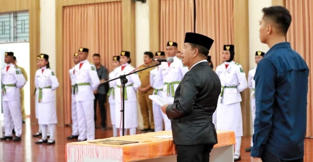 “Saya Bupati Simalungun dengan resmi mengukuhkan anak-anakku sebagai pasukan Pengibar Bendera Pusaka Kabupaten Simalungun.