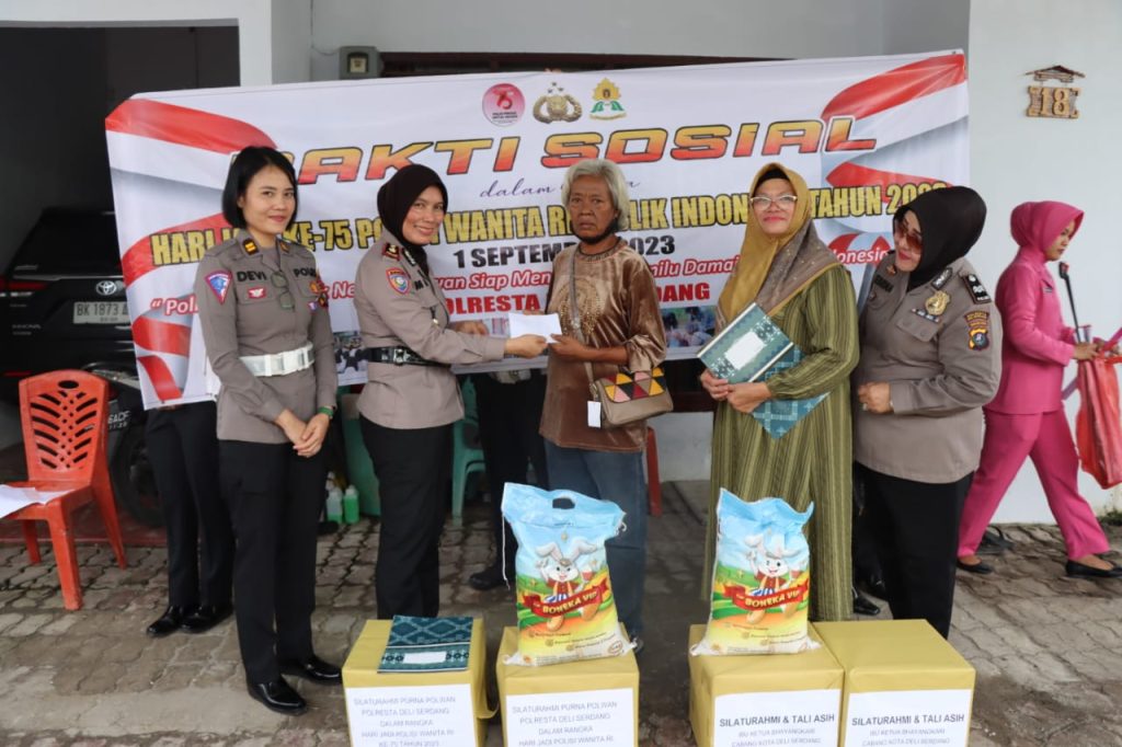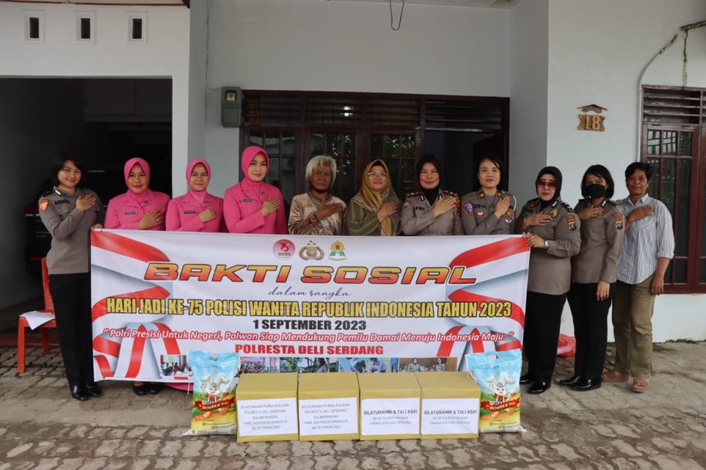 Dalam rangka menyambut hari jadi Polisi Wanita (Polwan) ke-75  (1/9) mendatang, Ibu asuh Polwan Polresta Deli Serdang Ny. Novi Irsan Sinuhaji didampingi Wakil ketua Bhayangkari cabang kota Deli Serdang Ny. Silvia Agus Sugiyarso bersama pengurus Bhayangkari cabang kota Deli Serdang dan Perwira Koordinasi Polwan Polresta Deli Serdang Kompol Rosmeri serta perwakilan Polwan Polresta Deli Serdang menggelar serangkaian acara, satu diantaranya anjangsana ke rumah purnawirawan Polwan Polresta Deli Serdang, tepatnya dikediaman Aiptu (Purn) Herlina Siregar dan Aiptu (Purn) Asiyah di Jl.Beringin Gg.Semangka No.18  Psr VII Tembung. Selasa (15/08).