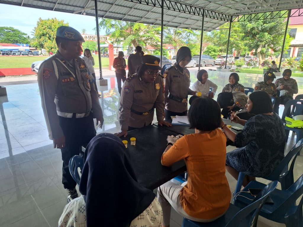 Usai pelaksanaan apel pagi 16 personil Polwan Polresta Deli Serdang menjalani tes urine khusus yang diselenggarakan oleh sie Propam dan sie Dokkes Polresta Deli Serdang.