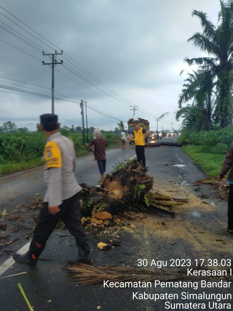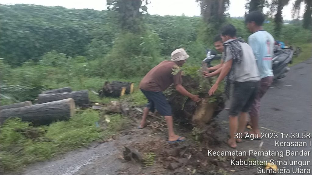 Kapolsek Perdagangan, AKP Juliapan Panjaitan, S.H, bersama Bhabinkamtibmas Aipda Idris Pasaribu, Aipda Jabidensi Samosir, SH, Pangulu Nagori Kerasaan II Pak Sutres, serta sejumlah warga Suka Rakyat, bergerak cepat dalam penanganan bencana alam yang terjadi.