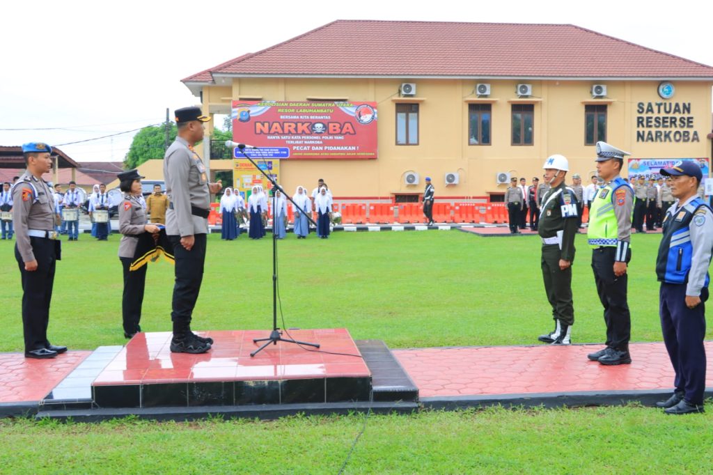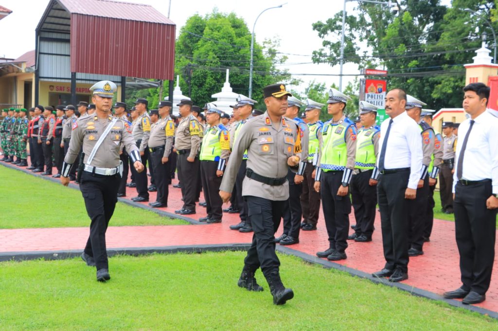 Kapolres Labuhan Batu AKBP James H. Hutajulu, SIK,SH,MH,MIK, Pimpin pelaksanaan apel gelar pasukan operasi zebra toba 2023, Senin (04/09).