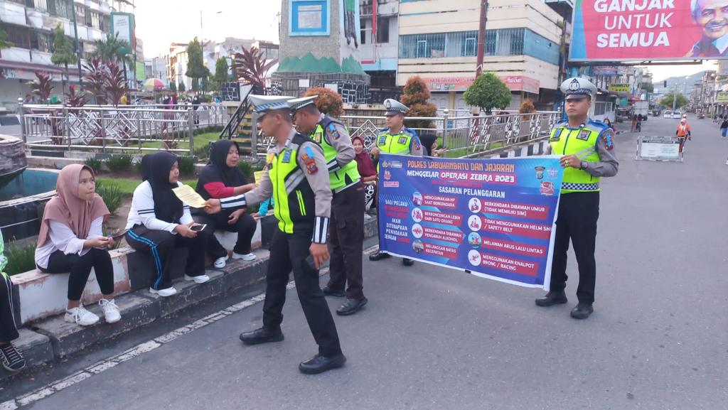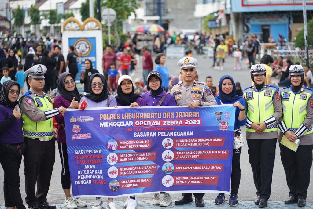 Personel Sat Lantas Polres Labuhanbatu memanfaatkan momen kegiatan Car Free Day Rantauprapat  yang berlokasi di Jl. Jend. Sudirman Rantauprapat, untuk menyampaikan sosialisasi tertib berlalu lintas, serta membagikan brosur dan sticker tentang pelaksanaan ops zebra toba 2023 yg sedang dilaksanakan mulai (4 s/d. 17/9), terang Kapolres Labuhanbatu AKBP James H. Hutajulu, S.I.K., S.H., M.H., M.I.K. melalui Kasat Lantas AKP M. Ainul Yaqin,  S.I.K., M.H. Minggu (10/9)