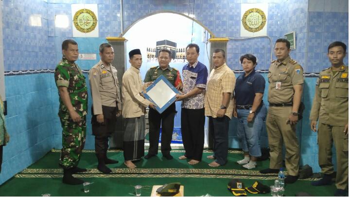 Danramil 06/Cakung Serahkan Bantuan Keramik di At-Thoyibah Pulogebang.
