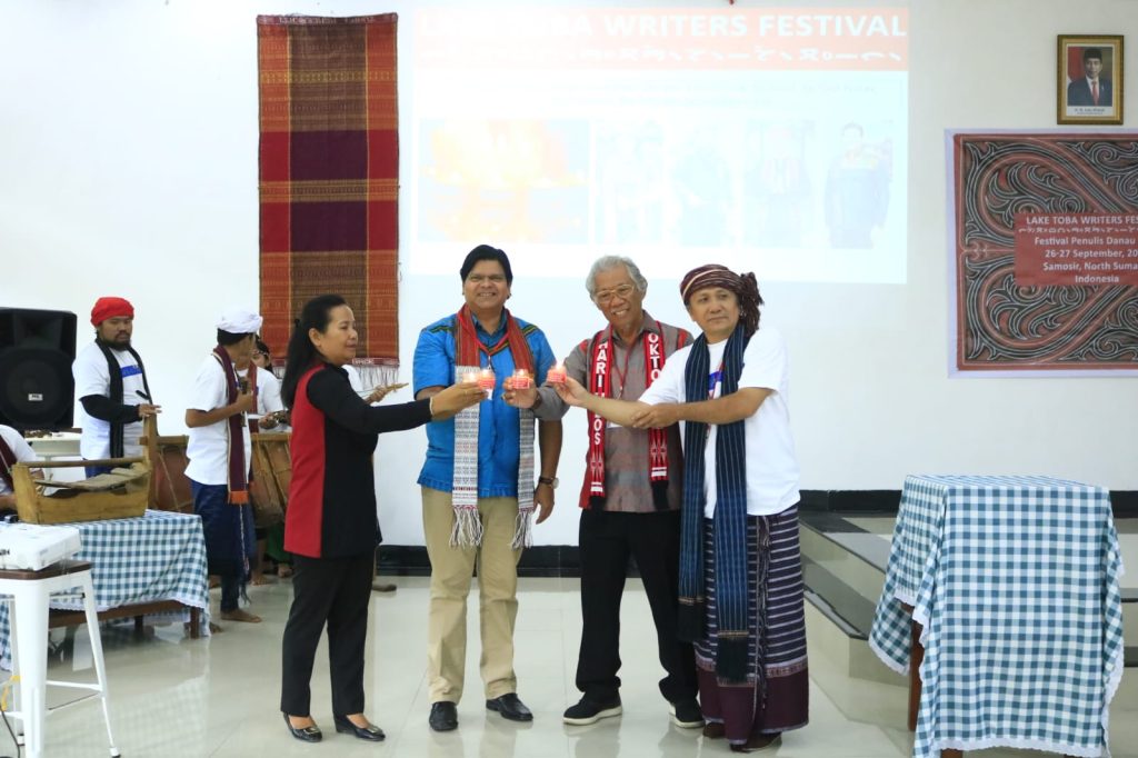 Samosir,Infokasus24.com-Pelaksanaan Lake Toba Writers Festival (Festival Penulis Danau Toba) 2023 digelar di Rogate Beach Hotel, Desa Unjur Kecamatan Simanindo Kabupaten Samosir, yang berlangsung mulai tanggal 26 s.d 27 September 2023 resmi dimulai. Acara ditandai dengan penyalaan lilin oleh CEO Indonesia Wise Amol Titus, Tetty Naibaho Kadis budpar, Saut Poltak Tambunan penulis Senior dan Thomson Hutasoit Seniman/Budayawan Rabu (26/09/2023).