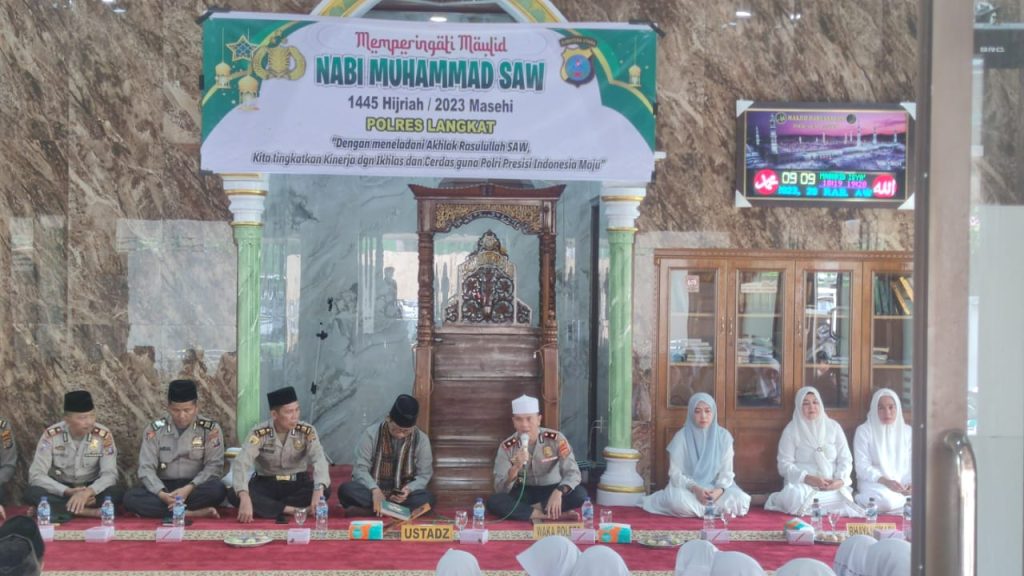 Langkat/infokasus.24Polres Langkat melaksanakan Peringatan Maulid Nabi Muhammad SAW di Mesjid Darussalam Polres Langkat Kamis( 5 /10/2023) pkl 09.30 Wib