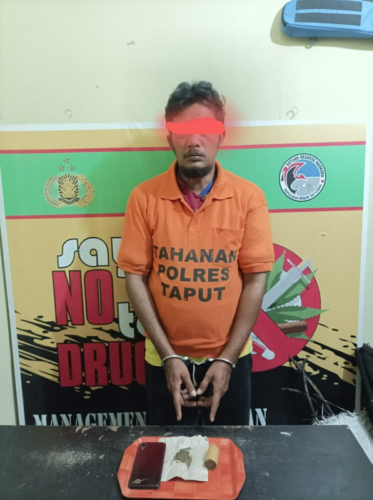 Saat penangkapan petugas pun berhasil menyita barang bukti dari kantong nya dan sebahagian di simpan dari rumahnya berupa 1 ( Satu) paket narkotika jenis Ganja dibungkus kertas nasi warna cokelat dengan berat 1,42 (Satu Koma Empat Puluh Dua) Gram. Setelah itu tim memboyong tersangka ke Polres Taput untuk diperiksa.