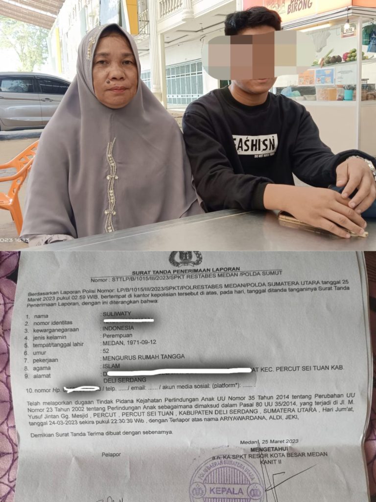 Mendengar anaknya menjadi sasaran kekerasan oleh tiga orang pelaku, orang tua korban secara resmi telah melaporkan peristiwa penganiayaan ini di Polrestabes Medan dengan tanda bukti Laporan Nomor STTLP/B/1O15/lll/2023/SPKT RESTABES MEDAN / POLDA SUMUT atas dugaan Tindak Pidana Kejahatan Perlindungan Anak UU Nomor 35 Tahun 2014 tentang Perubahan UU Nomor 23 Tahun 2002 tentang Perlindungan Anak sebagaimana dimaksud dalam Pasal 80 UU 35/2014.