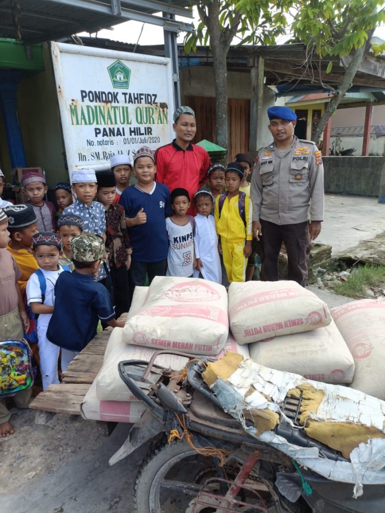 Labuhanbatu,(Infokasus.24)- Kapolres Labuhanbatu AKBP James H. Hutajulu melalui Kasat Polairud AKP P. Sitinjak menyebutkan bahwa bantuan sosial yang diberikan berupa 10 sak semen untuk Pembangunan Rumah Tahfiz Madinatul Qur’an yang beralamat di Link. IV Kelurahan Sei Barombang Kab. Labuhanbatu.