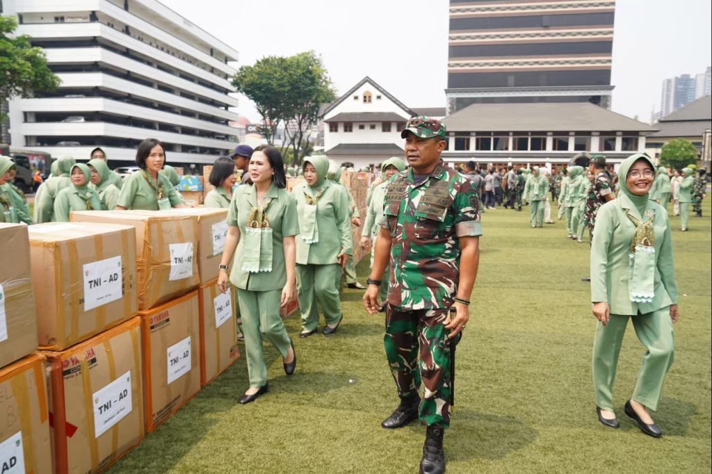Kepala Staf Angkatan Darat Jenderal TNI Agus Subiyanto, S.E., M.Si., didampingi Ketua Umum Persit KCK Ny. Evi Agus Subiyanto memimpin penyerahan bantuan kemanusiaan untuk masyarakat palestina.