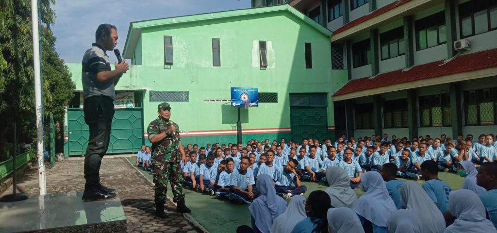 Tumbuhkan Semangat, Babinsa Koramil 03/Pasar Rebo, Ciracas Giat Wasbang di SMKN 52 Ciracas