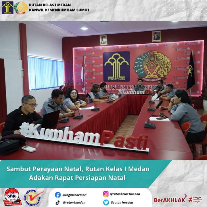 Medan,(Infokasus.24)-Panitia natal Rumah Tahanan Negara (Rutan) Kelas I Medan menyelenggarakan Rapat Panitia Natal untuk membahas rencana kegiatan Natal Bersama Tahun 2023, Senin (04/12).