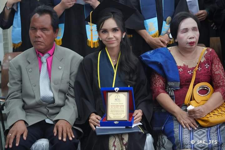 “Rasa haru yang tak terbayangkan: Seorang lulusan terbaik, Septiana Hirawati br Pasaribu, Prodi Pendidikan Bhs Inggris IPK 3,78, adalah putri dari pasangan orang tua Tunanetra. Betul lagu orang Kristen Batak: ‘Anakkonhi do hamoraon di ahu’,” tulis Robinson, di akun Facebooknya, menggambarkan kebanggaan akan prestasi luar biasa Septiana.