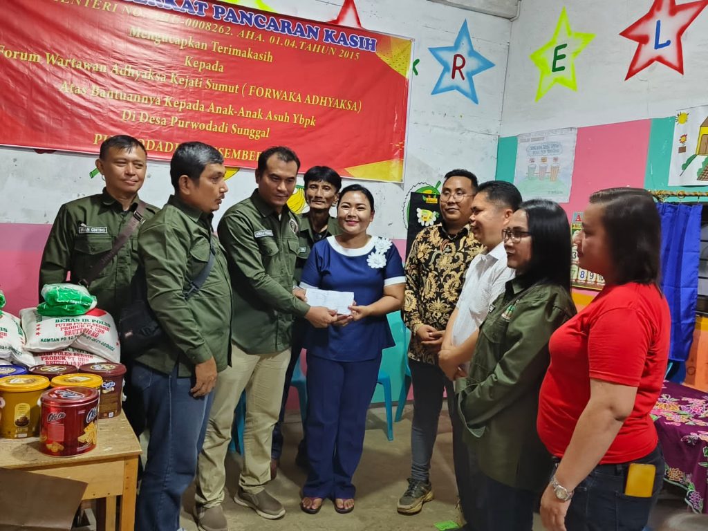 Medan,(Infokasus.24)- Forum Wartawan Kejaksaan (FORWAKA) Adhyaksa Sumut telah mengadakan kegiatan berbagi kasih yang patut diacungi jempol dengan anak-anak Panti Asuhan Yayasan Berkat Pancaran Kasih di Jalan Sekolah, Desa Purwodadi, Kecamatan Sunggal, Kabupaten Deliserdang pada Kamis (28/12/23). Kegiatan tersebut merupakan salah satu bentuk aksi sosial yang dilakukan oleh Forwaka Adyaksa dalam membantu masyarakat yang membutuhkan.