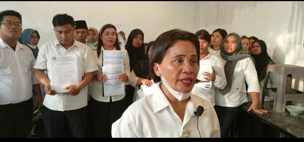 Foto : Ketua Forum Guru Honorer Merry Hasugian menyampaikan permohonan kepada Walikota Medan Bobby Nasution untuk mengangkat Guru Honorer Status P, Kamis(4/1/2024).( Dok. Agung/Red).
