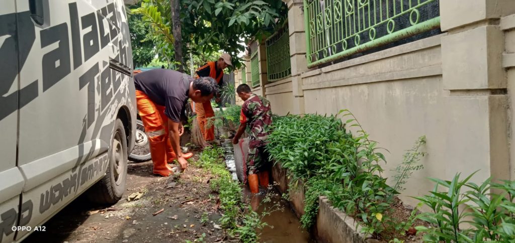 Kegiatan kerja bakti oleh Babinsa bersama Tiga Pilar dalam rangka antisipasi pencegahan banjir di wilayah binaan Teritorial dan juga pembersihan sepanjang aliran Drainase RW.10, agar saluran air tersebut bersih dari tumpukan sampah daun, ranting pohon dan plastik yang dapat menghambat jalannya aliran air menuju sungai.