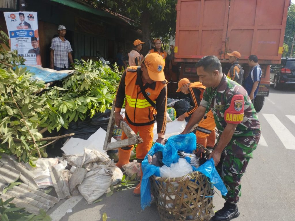 Danramil 07/Kemayoran Mayor Inf Harry Dani menyampaikan, kegiatan ini dilakukan dengan membersihkan sampah-sampah rumah tangga serta penopingan pohon.