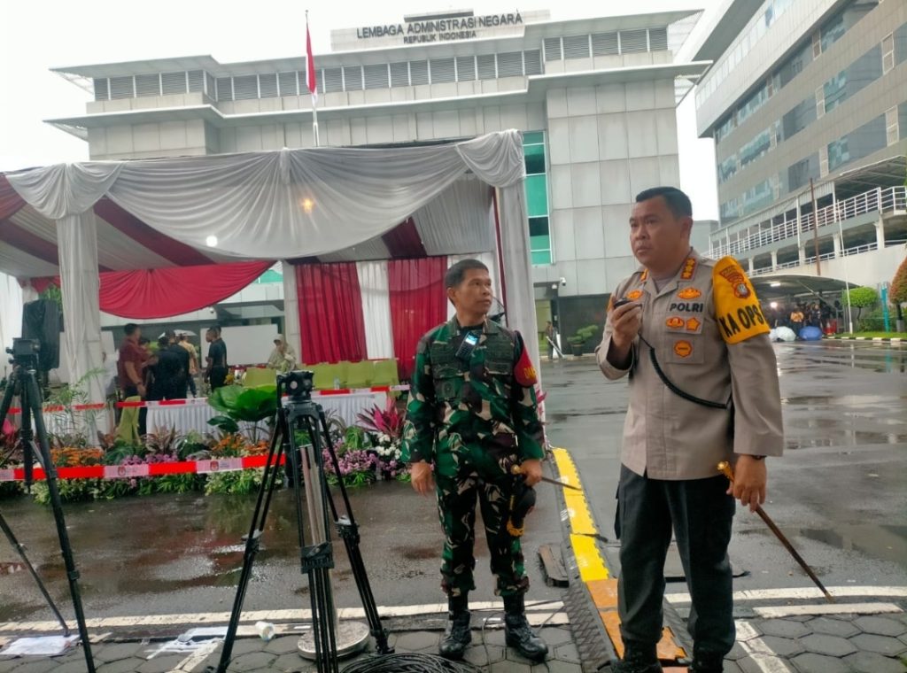 -Komandan Kodim 0501/JP Letkol Inf Bangun I.E. Siregar, S.H. MIPOL bersama Kapolres Metro Jakarta Pusat Kombes Pol Susatyo Purnomo Condro., S.H., SIK, M.Si mengecek langsung kesiapan TPS 10 sebagai tempat Presiden RI Bapak Ir. H. Joko Widodo beserta Ibu Hj. Iriana Joko Widodo melaksanakan pencoblosan memberikan hak pilihnya pada Pemilu 2024, bertempat di Gd. Lembaga Administrasi Negara Jl. Veteran Raya Gambir Jakarta Pusat, Rabu (14/2/2024)