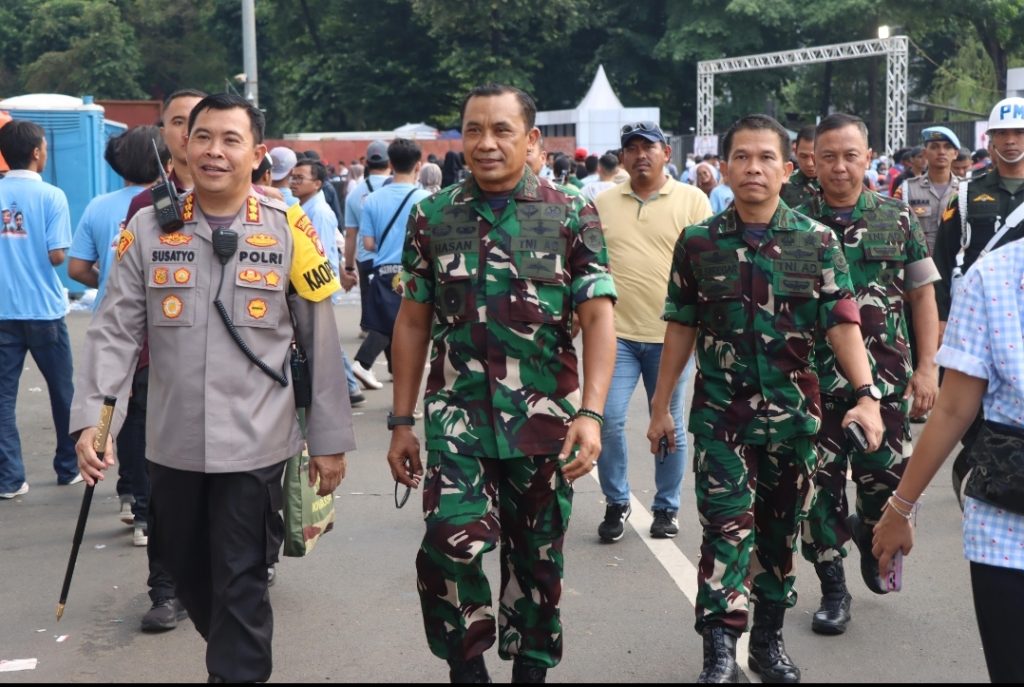 – Pastikan pengamanan pelaksanaan kampanye terakhir berjalan lancar dan aman, Pangdam Jaya/Jayakarta MayjenTNI Mohamad Hasan melakukan pemantauan dan monitoring langsung ke titik lokasi kampanye terbuka di Gelora Bung Karno (GBK) Jakarta Pusat, Sabtu (10/02/2024).