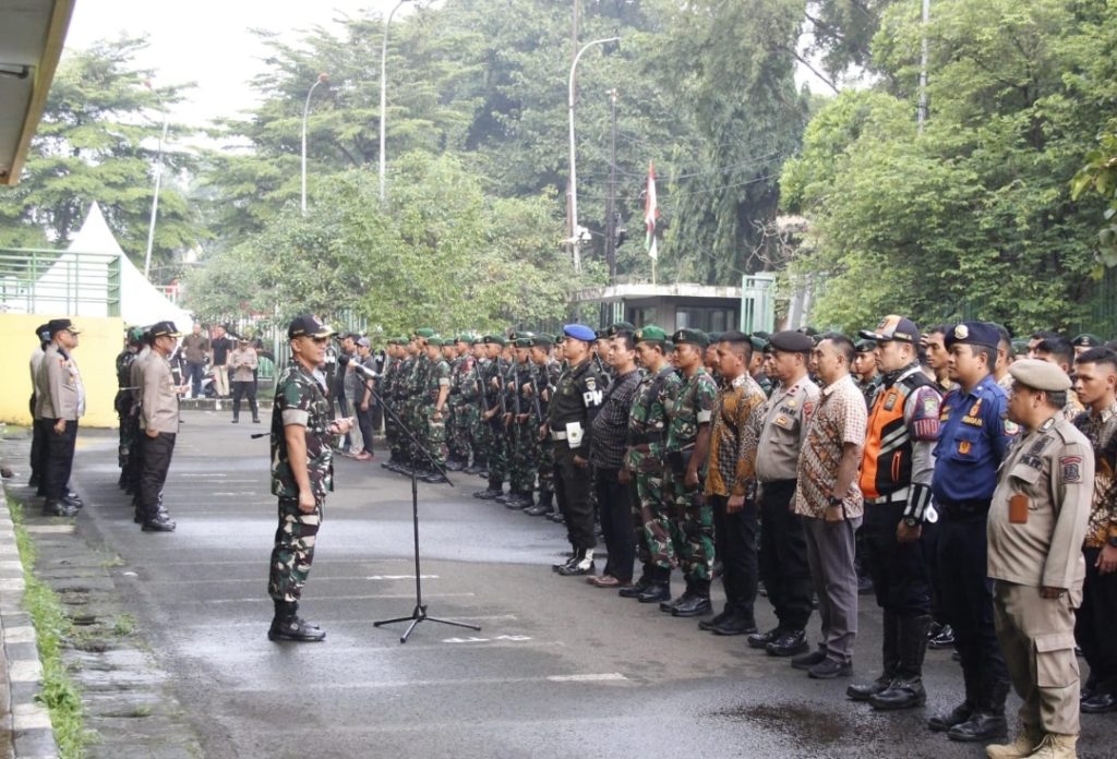 Foto : Apel Gelar pasukan kesiapan personel PAM RI 1 di lapangan parkir GOR Patriot Candra Bhaga di pimpin langsung oleh Dandim 0507/Bekasi dan Kapolres Metro Bekasi Kota (Julius)