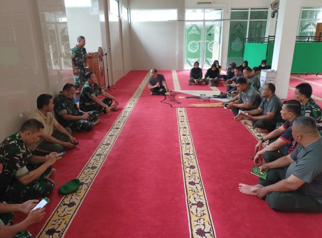 – Pasi Pers Kodim 0505/JT Mayor Inf Nawawi Afandi memimpin doa bersama, di Masjid PALAPA, Makodim 0505/JT, Jumat (16/02/2024).