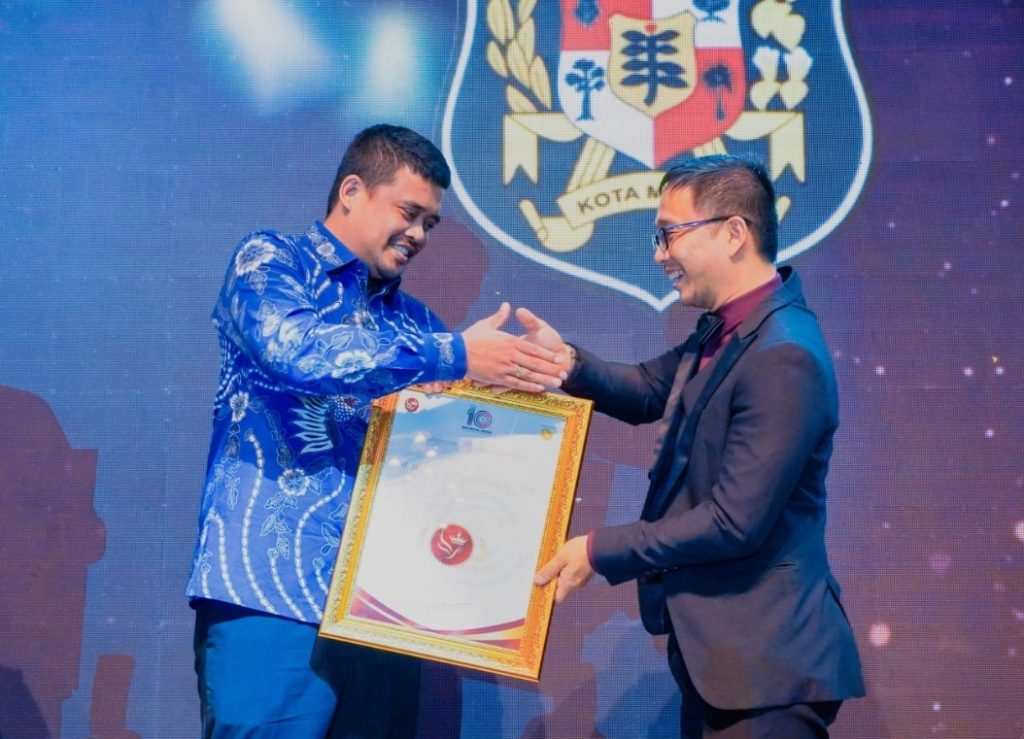 Bobby Nasution menerima penghargaan itu saat menghadiri Perayaan HUT ke-10 RSU Royal Prima yang berlangsung di Prima Ballroom Gedung Prima Indonesia, Jalan Sampul Medan, Minggu (18/2) malam.