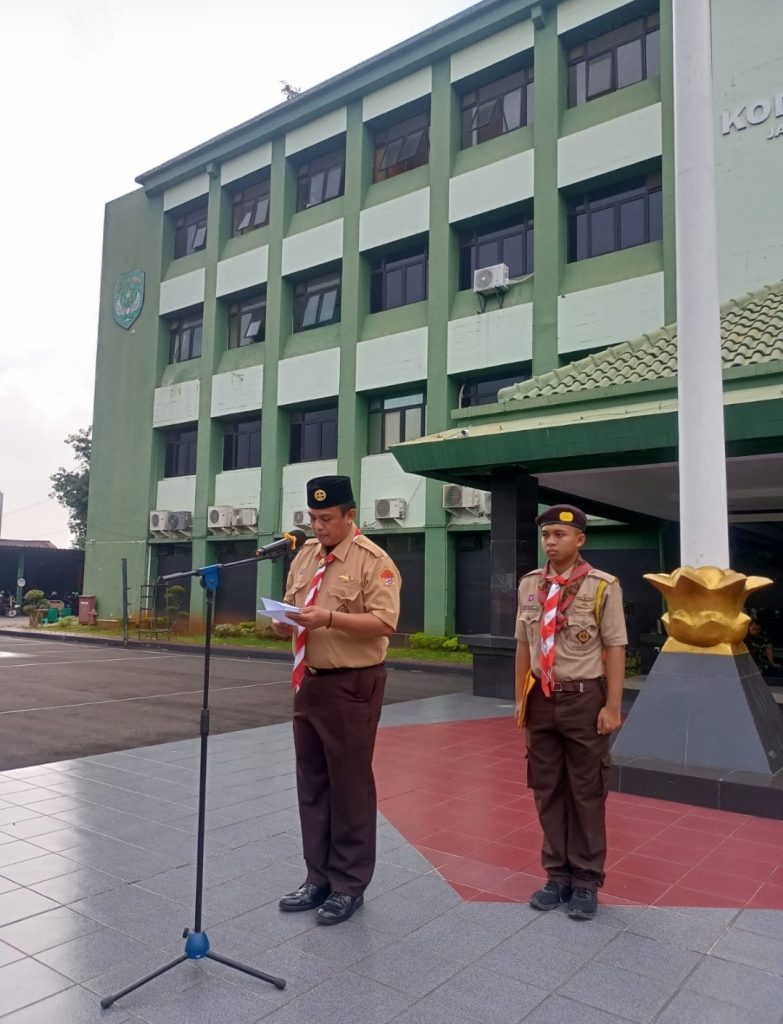Foto : Staf Ter Kodim 0505/JT, Pelda Donny mewakili Bidang Pembinaan Pramuka Saka Wira menggelar upacara pembukaan pendidikan dan latihan (Diklat) di Lapangan Apel Makodim 0505/Jakarta Timur.