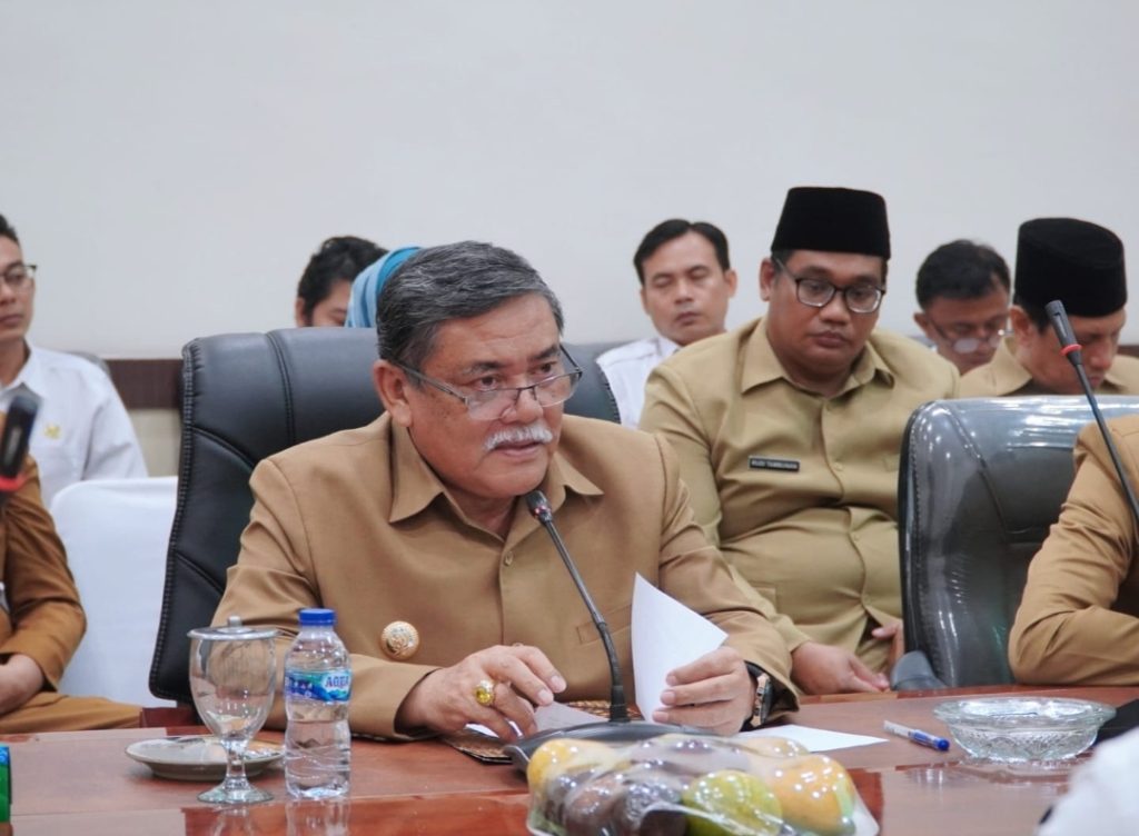 Foto : Bupati Deli Serdang HM Ali Yusuf Siregar beri tanggapan kepada pihak BPK Perwakilan Sumut. (Pbb).