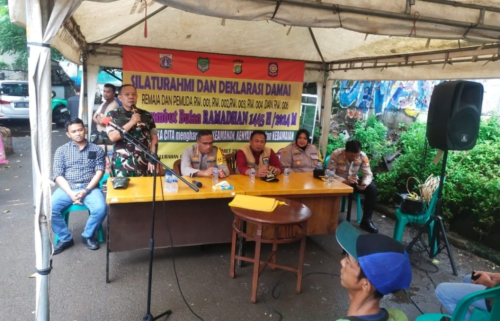 Jakarta Timur, (infokasus24.com)- Bertempat di TPU Prumpung Kelurahan Cipinang Besar Utara, Kecamatan Jatinegara, dilaksanakan kegiatan deklarasi damai bersama Lurah Cipinang Besar Utara dan Muspika Kecamatan Jatinegara Serta Para Remaja dan Pemuda RW 01,02,03,04 Dan 06 dalam Rangka Menyambut datangnya bulan suci Ramadhan 1445 Hijriah, Sabtu (09/03/24).