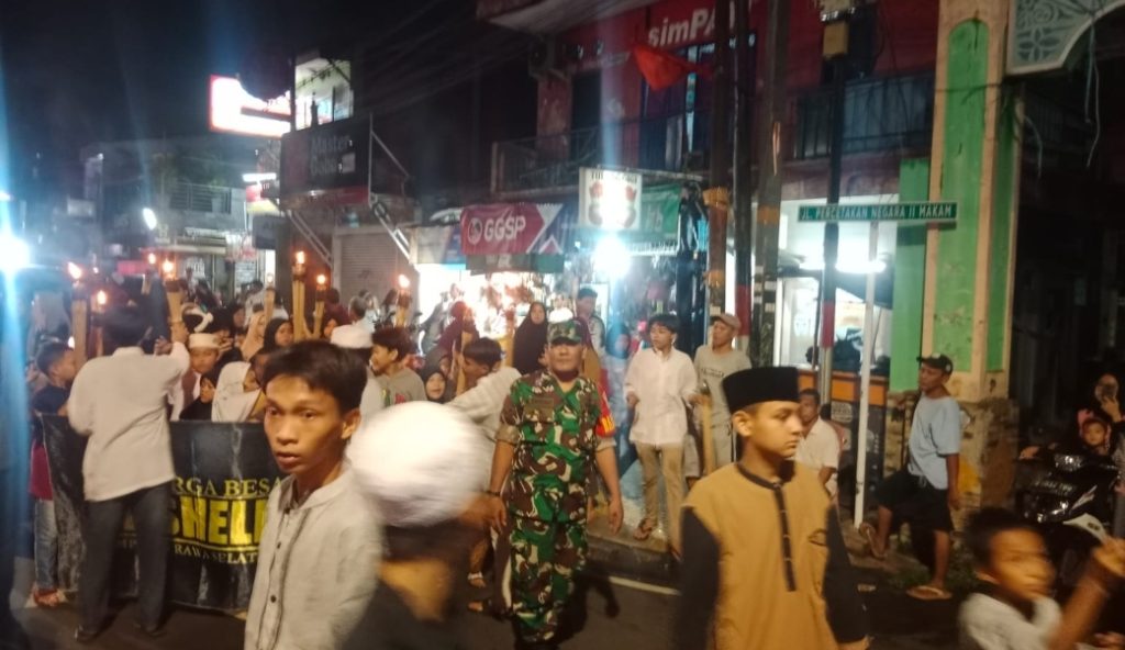 Foto : Babinsa Koramil 08/Johar Baru, Serda Agus Triyono monitoring pawai obor di Kel:l. Kampung Rawa, Kec. Johar Baru, Jakarta Pusat