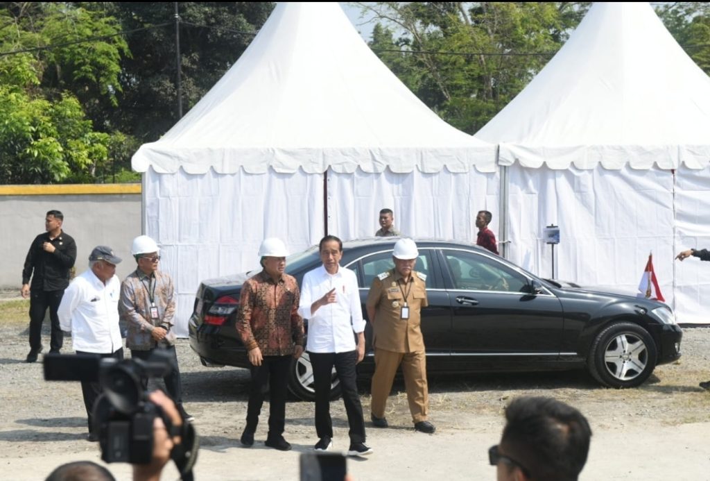 Foto : Presiden RI Joko Widodo didampingi Bupati Deli Serdang HM Ali Yusuf Siregar beserta Menteri terkait lainnya saat menuju lokasi peresmian Pabrik Minyak Makan Merah di Kec. Pagar Merbau Deli Serdang.