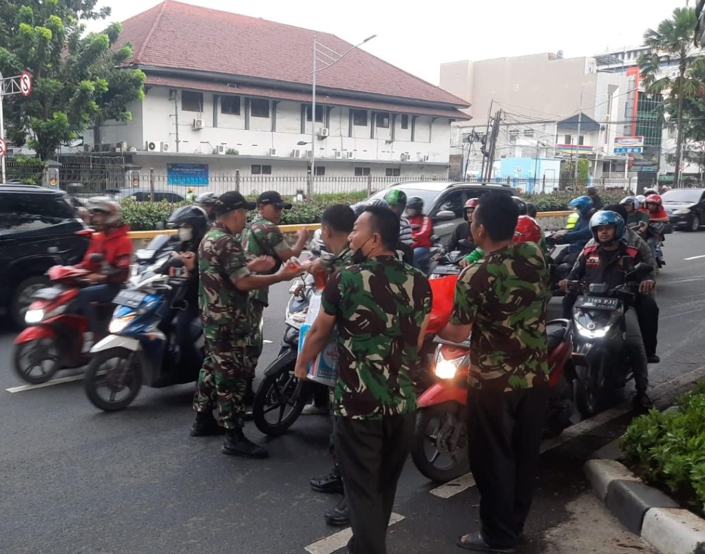 Foto : Babinsa Koramil 02/ Sawah Besar Bagikan Takjil kepada pengguna jalan di Jln. Budi Utomo Kel. Pasar Baru, Kec. Sawah Besar, Jakarta Pusat.