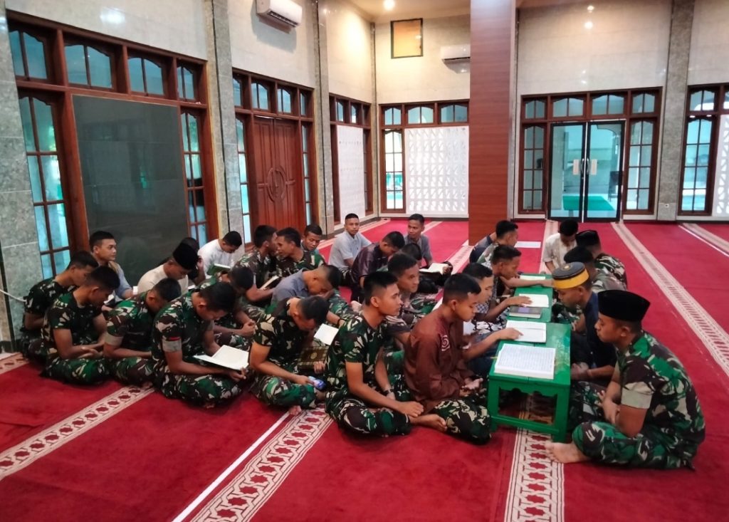 Foto : Kegiatan Tadarus Al-Quran oleh Prajurit Rangkok Batalyon Arhanud 6/BAY di Masjid Jami’al Izzah, Jakarta Utara.
