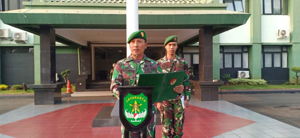 Kodim 0505/Jakarta Timur menggelar Upacara Bendera 17-san yang di ikuti oleh seluruh anggota TNI dan PNS, Perwira Upacara Kapten Inf Hadi Sasmungi, Komandan Upacara Kapten Arm Asnawi, Bertempat dilapangan Apel Makodim, Jumat (17/05/24).