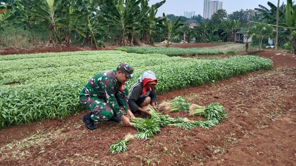 Bantu Warga Panen Kangkung, Babinsa Koramil Cipayung Berikan Semangat