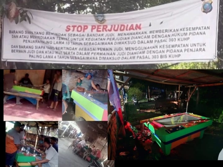 Mirisnya, diseputaran lokasi terdapat berupa poster dibentangkan berbentuk himbauan dengan kalimat sebagai berikut : ” “STOP PERJUDIAN – Barang siapa yang bertindak sebagai bandar judi, menawarkan memberikan kesempatan dan atau menyediakan tempat untuk bermain judi diancam hukuman pidana penjara paling lama 10 tahun sebagaimana dimaksud dalam pasal 303 KUHP dst”