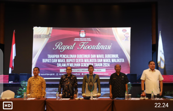 Dalam acara Rapat Koordinasi Tahapan Pencalonan Gubernur dan Wakil Gubernur, Bupati dan Wakil Bupati serta Walikota dan Wakil Walikota dalam Pemilihan serentak tahun 2024, dihadiri jajaran KPU Kabupaten / Kota Se Sumut, di Grand City Hall Medan tersebut disampaikan Agus Arifin dengan jarak waktu yang semakin dekat masa pendaftaran pasangan calon yang diusung parpol di KPU pada 27 – 29 Agustus 2024.