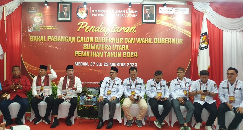 Ketua KPU menyampaikan Bahwa yang hadir dalam acara saat ini adalah Anggota KPU RI Betty Epsilon Idrus, Pimpinan Bawaslu RI DR. Puadi, Pimpinan dan anggota KPU Sumut, Roby Efendi Hutagalung, Fenggi Zebua, Sitori Mendrofa, Imsemi, Kotaris Banurea, Rajaab Damanik, juga Sekretaris KPU Sumatera Utara Saprin Daulay beserta jajaran baik pejabat struktural maupun pejabat fungsional maupun staf, kabag kasubbag yang telah memfasilitasi kegiatan pendaftaran di hari yang ketiga ini.