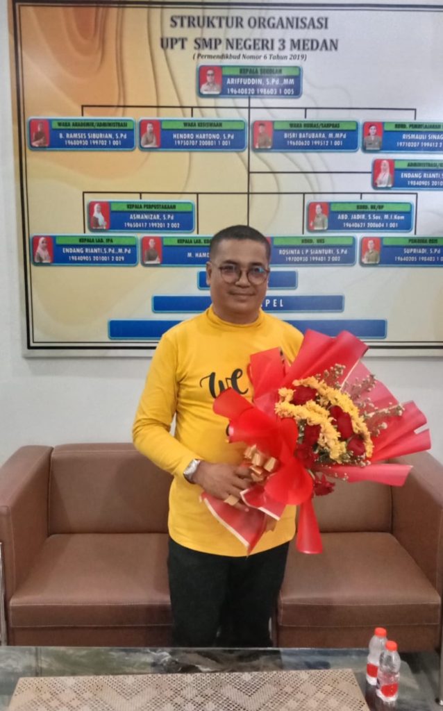 Sabtu (31/8/2024) ini adalah hari Istimewa di SMPN 3 Medan, karena hari ini adalah hari terakhir bersama Ariffuddin Kepala Sekolahnya (Kepsek). Suasana haru menyelimuti SMPN 3 Medan, Ariffuddin Kepsek yang mereka cintai dan hormati namun harus berpisah karena memasuki masa Purnabakti, setelah 38 tahun mengabdi sebagai Pendidik.