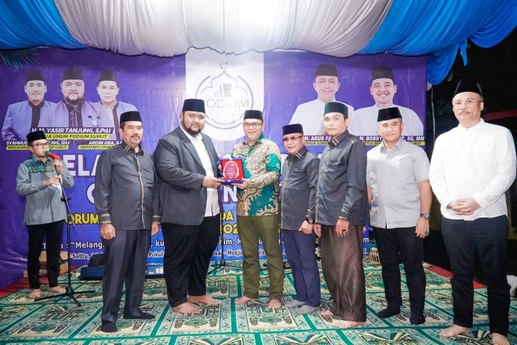 Ketua FODIUM Sumut, Al Ustadz H. M. Yasir Tanjung S.Pdi dalam sambutannya mengungkapkan rasa syukur dan terima kasih yang sebesar-besarnya kepada seluruh pihak yang telah mensukseskan kegiatan tersebut sehingga berjalan sukses dan lancar.