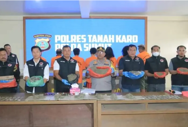 Karo,(Infokasus24.com)- Polres Tanah Karo kembali mencetak prestasi dalam upaya pemberantasan narkotika. Kapolres Tanah Karo AKBP Eko Yulianto, S.H., S.I.K., M.M., M.Tr. Opsla, memimpin konferensi pers terkait pengungkapan kasus narkotika jenis ganja yang digelar di Aula Pur Pur Sage Tantya Sudhirajati Polres Tanah Karo pada pukul 16.00 WIB, Senin (18/11/2024).