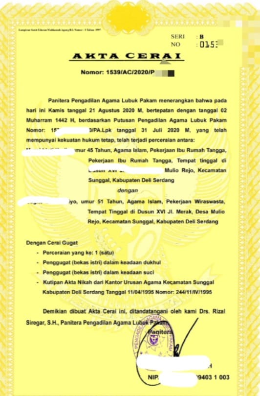 Amatan wartawan sekilas Akta Cerai dengan nomor 0157 yang seolah resmi dikeluarkan oleh panitera pengadilan agama lubuk pakam. Akan tetapi ketika dicek ternyata namor akta cerai dinomor 0157 keluar nama yang berbeda.