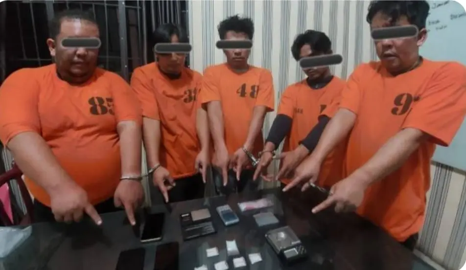Petugas mengamankan 2 (dua) orang bandar kecil dan 4 (empat) orang pengguna beserta Barang Bukti yang meliputi enam paket plastik klip berisi kristal putih yang diduga sabu seberat netto 26,29 gram, 1 lembar plastik klip pembungkus sabu, satu bal plastik klip kosong, tiga unit timbangan elektrik, tiga unit ponsel Android dan satu unit mobil sedan Corona warna hitam dof tanpa pelat nomor serta 1 butir pil ekstasi berat netto 0.34 gram.