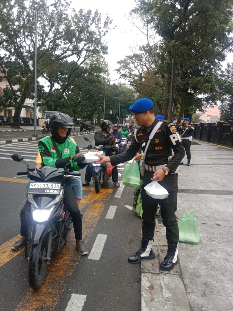 Dalam kegiatan ini Denpom I/5 Medan membagikan 50 bungkus makanan yang diberikan kepada warga dan pengendara yang melintas di depan Markas Denpom I/5 Medan.