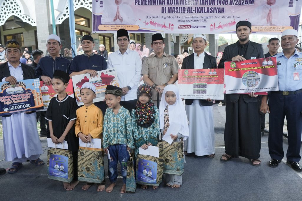 Dalam acara yang juga diisi dengan buka puasa bersama dan salat Maghrib berjamaah itu, Pemko Medan menyerahkan sejumlah bantuan secara simbolis diantaranya hibah Rp.50 juta untuk pembangunan Masjid, bantuan sosial sebesar Rp.10 juta dan paket ramadan, lalu penyerahan akta pendirian Koperasi Masjid dan satu unit gerobak usaha, 100 bibit cabe dan budidaya ikan dalam ember, satu set tenis meja, rak buku, set buku serta barcode e-book,